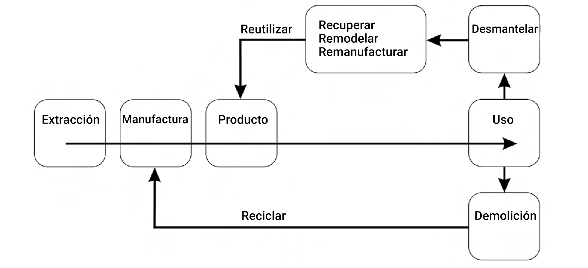 Figura 1. Ciclo de vida lineal de materiales. Adaptación de Addis (2006)