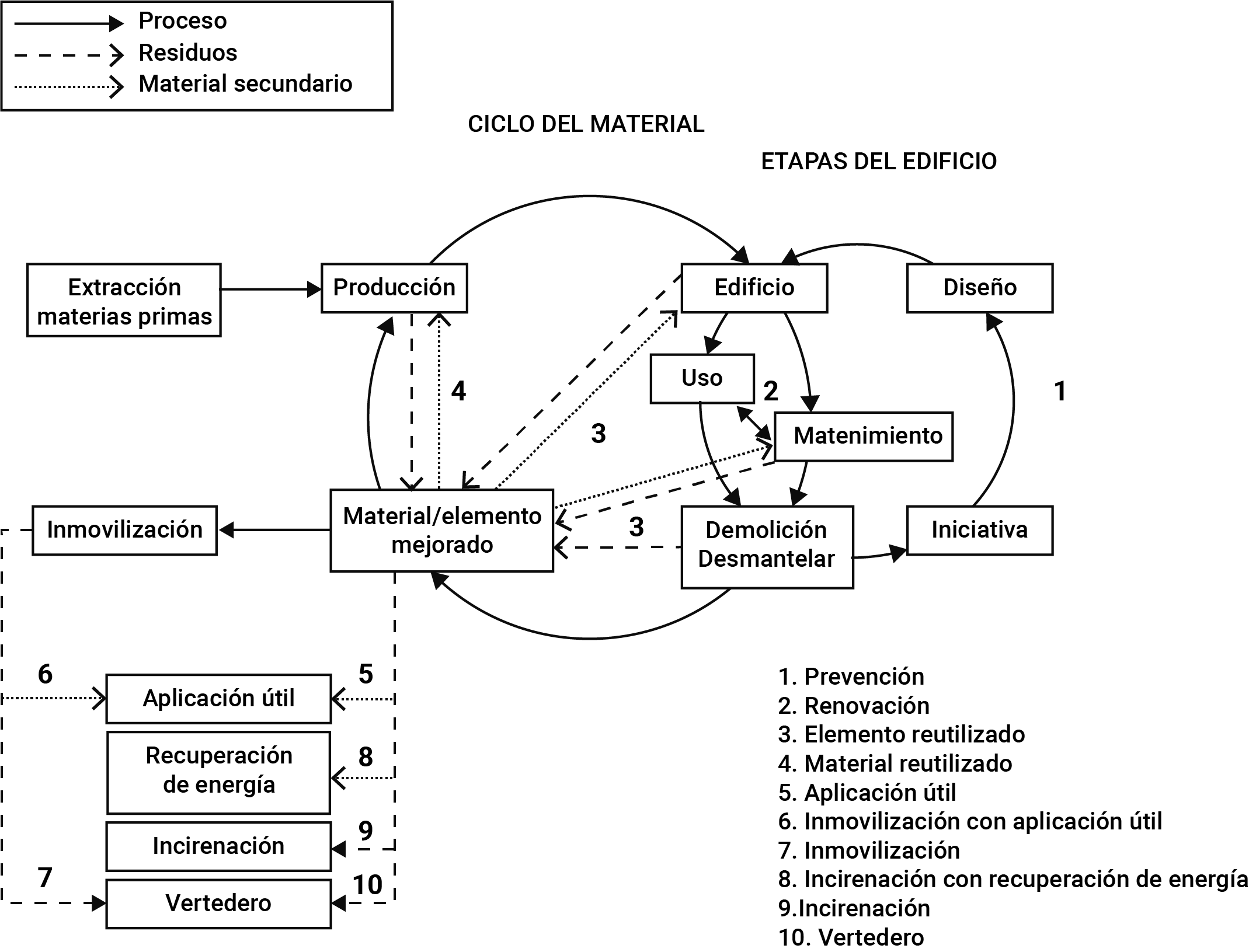| 9. Relleno sanitario | El destino final de los materiales si no se puede encontrar un uso alternativo. |