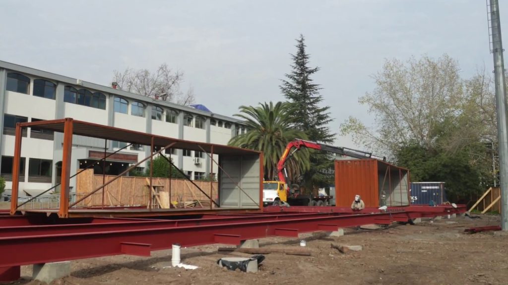 El Edificio ‘Recicla’, fue diseñado por los arquitectos Iván Jiménez y Willy Muñoz, egresados de la USACH, y toma por desafío construir un edificio que permita crear conciencia en torno al reciclaje en el campus universitario. Para esto, se aplican las estrategias de reutilización con 16 contenedores marítimos que fueron dados de baja de sus funciones originales y reciclaje de maderas recuperadas de los procesos de demolición de viviendas. Cabe destacar que la reutilización para la reducción de residuos, al prescindir de procesos que requieren un mayor uso de energía y tecnologías, tiene un menor impacto ambiental comparado con el reciclaje. En este caso, según los autores, el tratamiento de las maderas para su reutilización consideró varias horas para volver a darle un valor y uso a un elemento que se consideraba desecho o escombro.